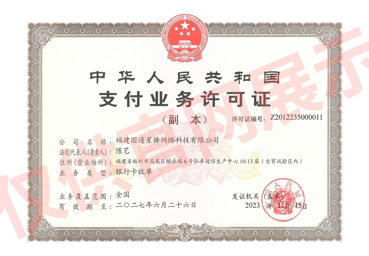© All Rights Reserved 福建国通星驿网络科技有限公司 支付业务许可证编号: Z2012235000011